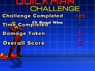 基本的にCPU専用キャラとなっており、プレイヤー操作は不可。縦横無尽に飛び回るクイックマンを攻撃して、所要時間やダメージ量によって、トータルスコアが表示されるという仕様で、別名『クイックマン チャレンジ』。