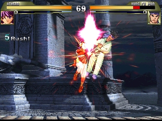 そして技の面においては、様々なシリーズから必殺技・超必殺技を搭載した上でアレンジ技などが追加されており、それぞれの技に独自の演出・エフェクトを搭載しているなど、総じてかなり完成度の高いキャラとなっている。