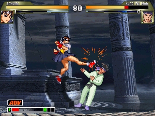 KOF98最大の特徴である『アドヴァンストモード(ADV)』『エキストラモード(EX)』が搭載されており、キャラ決定時のボタンによって選択が可能。またそれぞれのモードにおける各種システム・操作性が再現されており、それらに付随する各種ゲージも搭載。