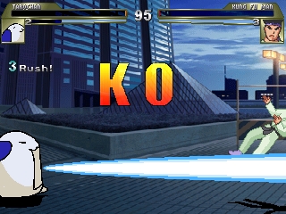 基本的なシステム・操作性はシンプルな格ゲー仕様で、技の面においてはオリジナルの必殺技・超必殺技が搭載されており、全体を通してご当地キャラのようなふわふわとした雰囲気を醸し出したキャラとなっている。