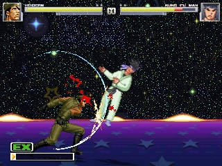 そして技の面においては、原作における必殺技・超必殺技が搭載されており、性能面や各種演出一部KOF98UMも織り交ぜつつ製作されているなど、総じてかなり完成度の高いキャラとなっている。
