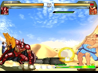 ゴールデンアックス・ザ・デュエルよりデス・アダー。ゴールデンアックス自体は横スクロールアクションだけどそれを格ゲーしたものが『ザ・デュエル』。さらに、マブカプの要素を加えつつアレンジされたのがこのキャラ。